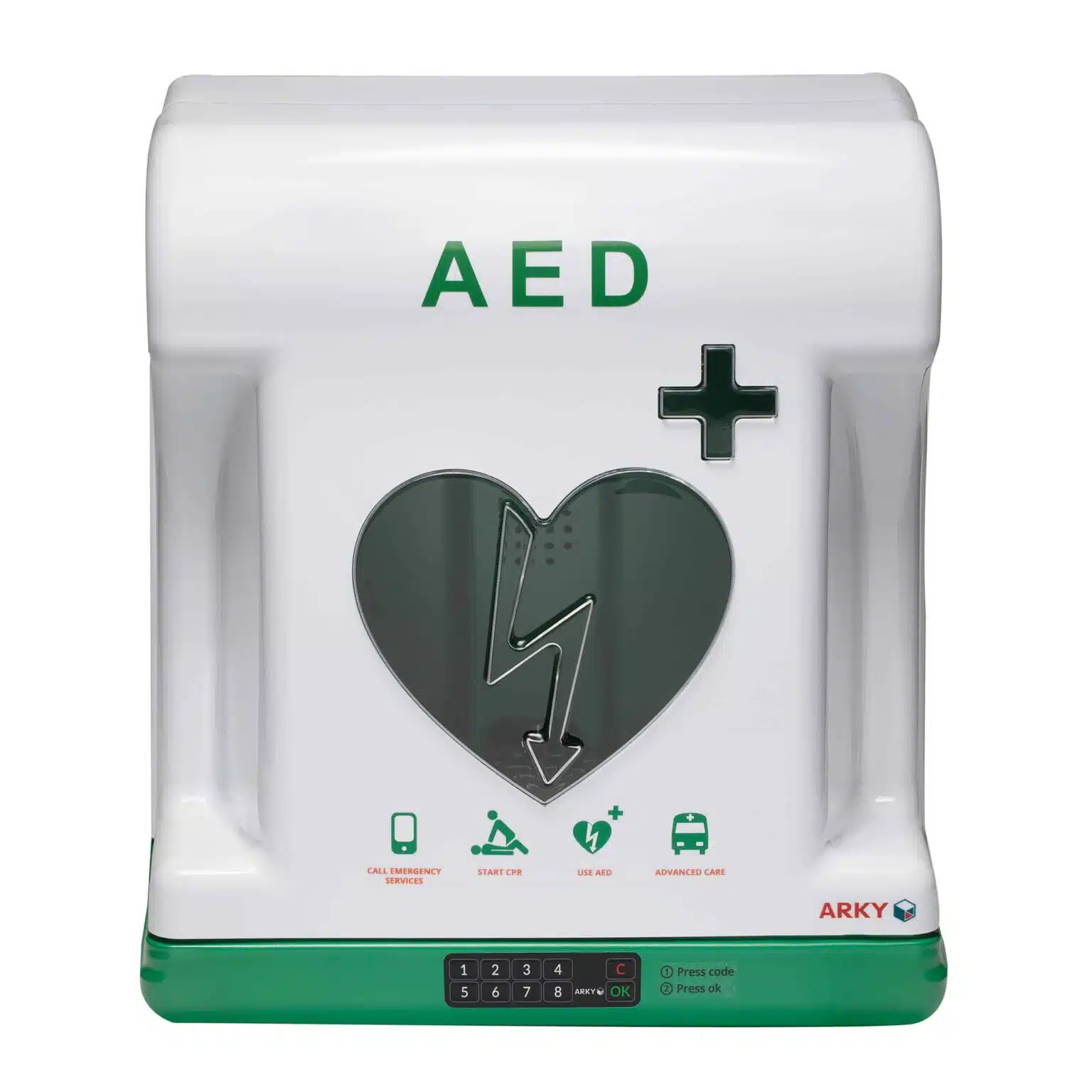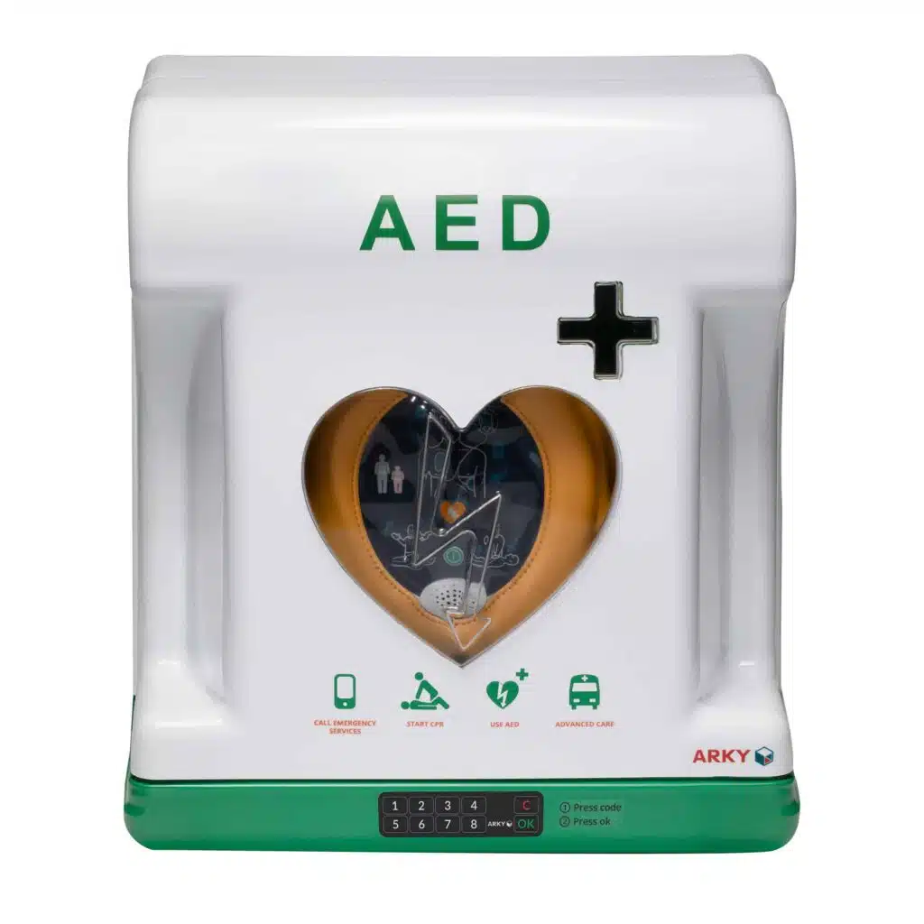 De ventilatie en verwarming beschermen de AED tegen temperaturen tussen -30°C en 50°C. De Core heeft een interne verlichting die ervoor zorgt dat de kast altijd zichtbaar is. Met een IP-waarde van 55 is hij stof- en waterbestendig. De alarmfunctie en digitale pinlock beschermen de AED tegen diefstal en vandalisme. De Core Plus is door zijn vormgeving duidelijk herkenbaar als AED kast. De kast is zo ontwikkeld dat deze op elk type AED past.
