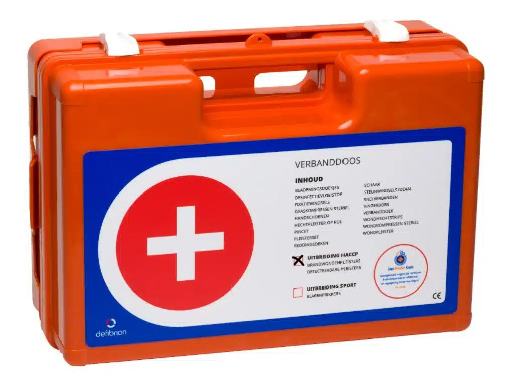 Voor organisaties die met HACCP werken gelden strenge eisen. De EHBO-koffer HACCP is speciaal ingericht voor organisaties die met voedingsmiddelen werken, zodat er in het geval van een ongeluk passende hulp kan worden verleend. Door het etiket heeft u al een indicatie van de inhoud zonder de verbanddoos daadwerkelijk te openen. De inhoud van onze verbanddozenserie is samengesteld conform de Oranje Kruis-normen.